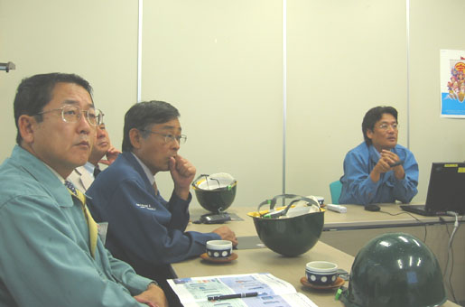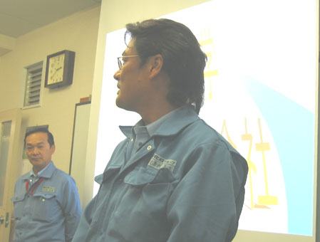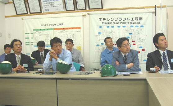 | 山陽石油化学(株)工場の概要説明 | 熱心に説明を聞く参加者 | ||