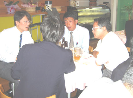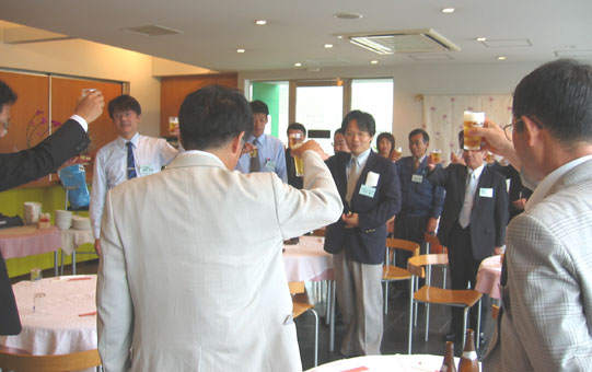 | 見学後水島サロンにて懇親会(話に花が咲きよいアイディアが出る?) | |